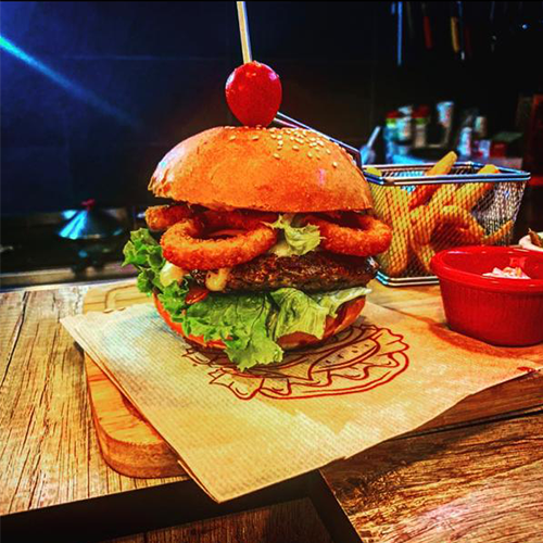 130x2 gr %100 dana et, marul, domates, turşu, crspy, cheddar, mozerella, karamelze soğan özel sos...
